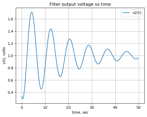 The voltage on node 3 is symplified with the chain of operators applied to the expression; nsimplify(), simplify(), expand() and together(). This helps SymPy solve the inverse Laplace transform.