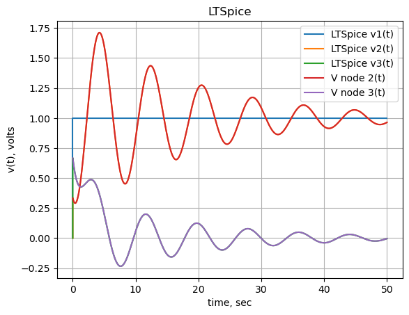 voltage3[i] = LTSpice_data[i][3]Plot the LTSpice data and the Python data to see if they agree.