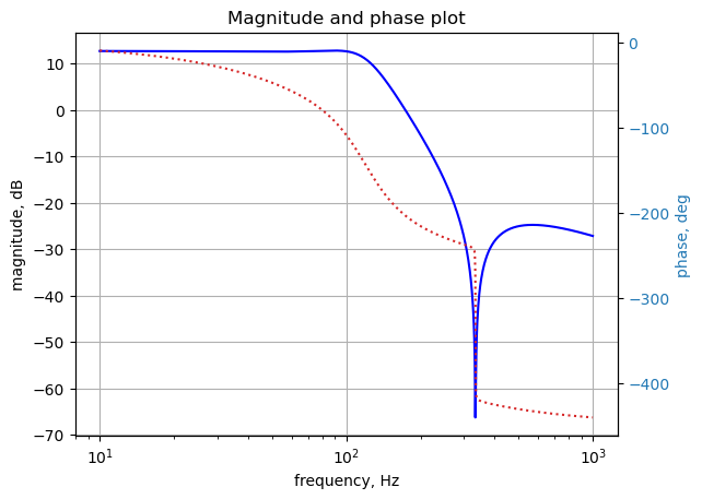 plt.title('Magnitude and phase plot')