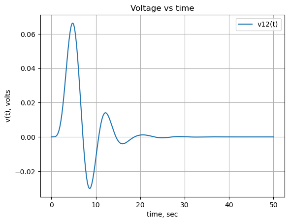 The voltage at node 12 is symplified with the chain of operators applied to the expression; nsimplify(), simplify(), expand() and together(). This helps SymPy solve the inverse Laplace transform.